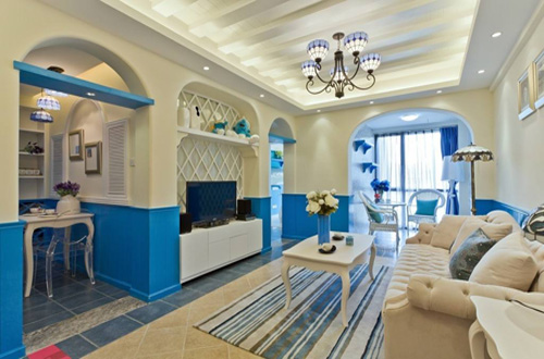 對(duì)于地中海這樣的沿岸地區(qū),裝修風(fēng)格中的主要色系就是白色和藍(lán)色,搭配上造型別致的拱形設(shè)計(jì)物件和石礫貝類等素材的任意組合,即可營(yíng)造出別具特色的地中海風(fēng)情。在打造地中海風(fēng)格的家居時(shí),配色至關(guān)重要,要突出純粹的天然并可以給人一種陽光灑下,清新自然的感覺。當(dāng)然,來自于大自然最純樸的色彩元素不僅僅只有藍(lán)白兩色,與黃色,土黃色,綠色,藍(lán)紫色以及紅褐色交織在一起的色彩,才能創(chuàng)造出地中海獨(dú)有的藝術(shù)風(fēng)格。