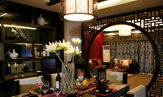 中式田園風(fēng)格的另一特點(diǎn)即是對(duì)于傳統(tǒng)的居室設(shè)計(jì)很注重空間的層次感。設(shè)計(jì)時(shí)根據(jù)居住人數(shù)的不同,對(duì)整間房屋做出了空間功能性的劃分,但是并非選用打隔斷來(lái)完成,而是采用“啞口”或者是簡(jiǎn)約化的“博古架”開(kāi)劃分區(qū)域。在個(gè)別需要隔絕視線的地方,可選擇用實(shí)木制作而成屏風(fēng)或者窗欞來(lái)分隔兩個(gè)空間區(qū)域,選擇這樣的方式,不僅方便,而且使得空間活動(dòng)范圍更為靈活,更具層次之感。