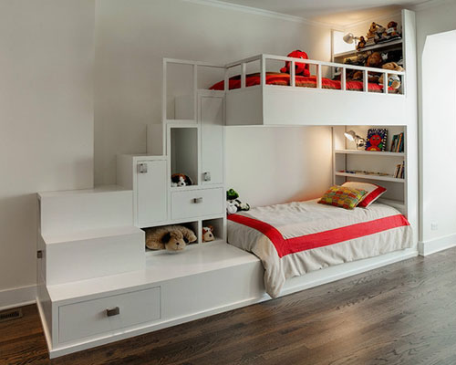 這款上下鋪的設計是不是很新穎也很fashion。白色的漆面,干凈利落;獨特的造型,棱角分明;多功能的設計理念,匠心獨運,使得整個雙層床別具一格,即使這般素雅,也難掩散發(fā)出的別樣魅力。