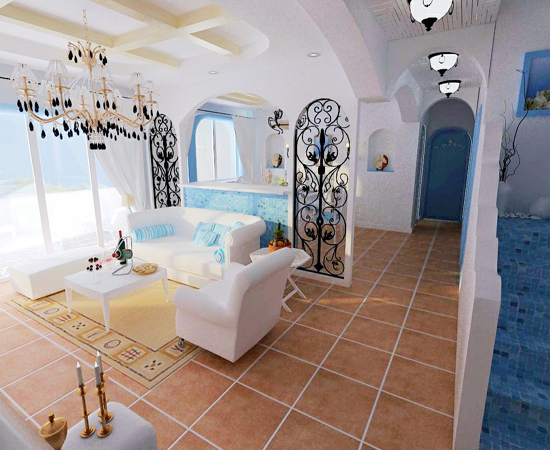 地中海風(fēng)格的家庭設(shè)計(jì)中,家具多是采用色彩簡(jiǎn)單,線(xiàn)條簡(jiǎn)潔,邊幅渾圓的木質(zhì)家具,盡顯自然。地面多以赤陶或石板為主,更具古樸風(fēng)情。對(duì)于地中海風(fēng)格家居特點(diǎn),裝飾元素多采用小石子、陶瓷類(lèi)、瓷磚、貝類(lèi)及玻璃制品等,切割后可隨意組合。簡(jiǎn)潔素雅的小花格子圖案是地中海主要的風(fēng)格,造型獨(dú)特的鐵藝裝飾品及家具也是地中海這個(gè)沿海地段所特有的產(chǎn)物,而且,爬藤類(lèi)植物在地中海家居設(shè)計(jì)中是極其常見(jiàn)的,走進(jìn)地中海風(fēng)格的家具中,隨處可見(jiàn)一盆盆可愛(ài)的綠色盆栽擺放其中,藤蔓類(lèi)植物以其本身的攀爬特點(diǎn),潛移默化中造就了居室內(nèi)別具一格的裝修風(fēng)格。這種獨(dú)特的裝修方式是地中海區(qū)域外家居設(shè)計(jì)中所不具有的。