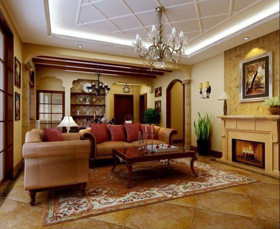 古典歐式風(fēng)格最適合應(yīng)用于大空間居住面積的房屋內(nèi),以其華麗高貴的裝飾,濃烈厚重的色彩、精美別致的造型,展現(xiàn)了古典歐式風(fēng)格的氣勢。這種風(fēng)格的客廳,大多數(shù)都喜歡用大型的燈池來裝飾屋頂,選用造型新穎華貴的吊燈來營造氣氛,門窗的造型都為上半部制成圓弧形,就連勾縫這樣的細(xì)微之處也選用有花紋的石膏線來勾邊。其實,室內(nèi)的家居是最能完整繼承和體現(xiàn)古典歐式風(fēng)格的精髓所在,在胡桃木、橡木等材質(zhì)的家居中,表達(dá)的不僅僅只是它的高貴,更傳承和發(fā)揚(yáng)著古典歐式文化的內(nèi)涵??蛷d內(nèi)的壁爐可是古典歐式風(fēng)格的特點之一,不論壁爐的設(shè)計是真的壁爐還是假的裝飾品,都可以為客廳營造出溫暖的感覺;高檔的壁紙,古樸的仿古磚,帶有花紋的地毯……烘托出了雍容華貴的裝飾效果。墻角的那一盆翠綠色的盆栽,帶給了整件客廳不一樣的色彩,高雅中透著那么一點活潑。