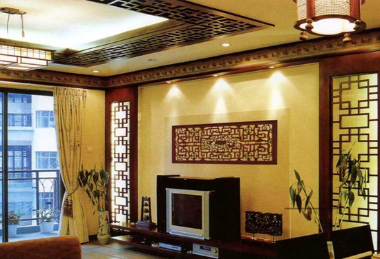 客廳:對于客廳的布置設計,色調上主要以米白色為主,如果窗簾的顏色選擇為米黃色,那么客廳內的電視柜及茶幾的顏色要接近窗簾的顏色,提高了客廳的亮度也具有了空間連續(xù)性。家具和其他配飾在色彩的選擇上可加入硬朗或中性色調的,選用藍白相間的布藝沙發(fā)與電視柜和茶幾相搭配,使得屋內整體給人一種清爽、優(yōu)雅而又溫馨、舒適的感覺。誰說田園風格中一定要有小碎花布藝才能體現(xiàn)悠然自得的感覺,客廳內即使沒有小碎花裝飾品,不要緊,木質的吊頂即可使的平淡無奇的客廳瞬間有了鄉(xiāng)村小木屋般的悠然田園之感。