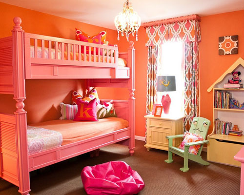 先來(lái)看看這款兒童雙層床設(shè)計(jì),粉色木質(zhì)床體,做工精細(xì),線條流暢,略帶些許歐美格調(diào)。家中有雙胞胎的家庭可在孩子長(zhǎng)到一定年齡的時(shí)候選擇這種兒童床,即能減小占地面積又能給兩個(gè)孩子各自的生活空間,小朋友爬上爬下的還可以鍛煉他們的靈活性。在主體色為桃粉色的裝修環(huán)境中,一把造型搞怪的綠色青蛙椅給整件房間增添不少新意和樂(lè)趣。