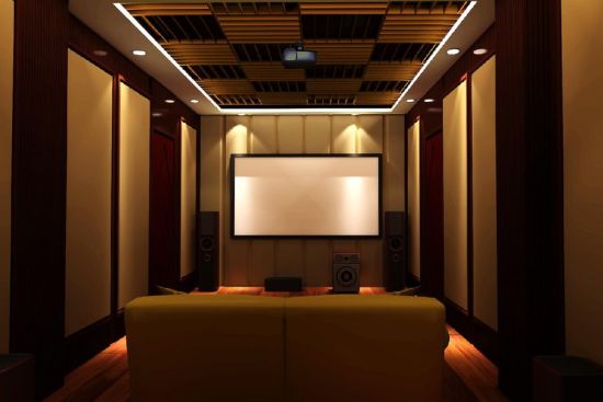 當(dāng)選用地下室或車庫改作家庭影院時,在隔音處理上要比一般房間簡單很多,或者可以忽略不計。還不會給鄰居造成營影響,用車庫或地下室做家庭影院如需進(jìn)行隔音設(shè)計,可以簡單地鋪一層吸音板或擠塑板,用一個實木門就完全可以了,如果一些消費者不喜歡對墻面做軟包設(shè)計,也需要把墻面視需求做成凹凸面,這樣有利于聲音的擴散,增強視聽效果。還需注意的是,電視機天線入口、空調(diào)管道進(jìn)風(fēng)口等都要做好消聲處理等。
